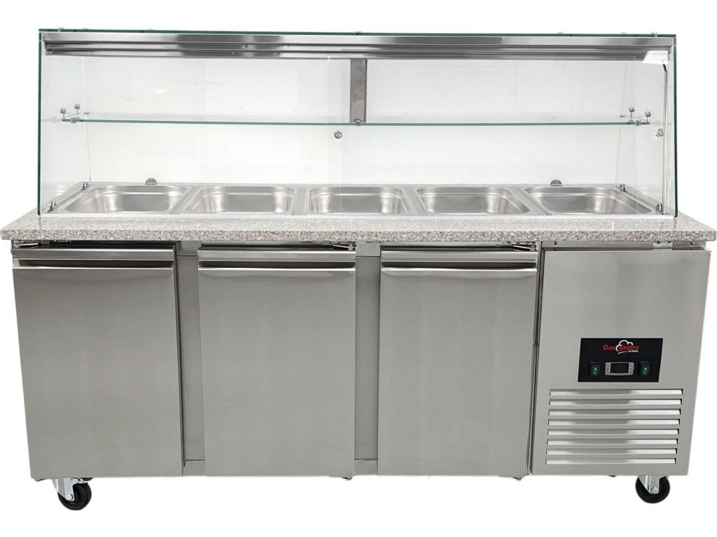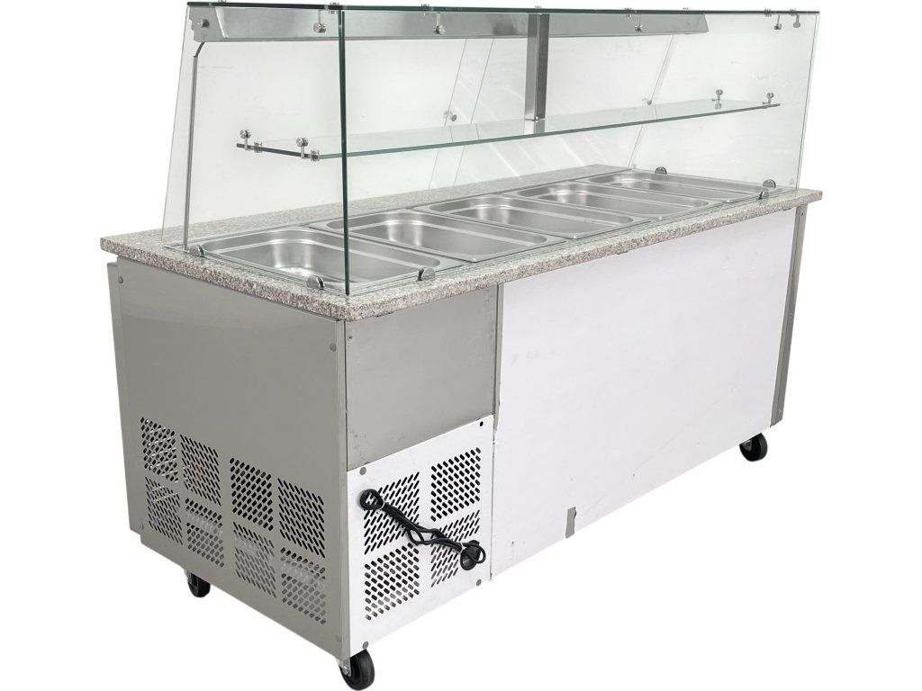 Stół chłodniczy przeznaczony dla punktów gastronomicznych i innych lokali gastronomicznych. Górna część jest przystosowana do ustawienia 5 pojemników GN 1/1 , gdzie potrawy są wyraźnie eksponowane pod szklanym blatem z wbudowanym oświetleniem. Dolna część oferuje chłodniczą przestrzeń magazynową z możliwością bezpośredniego wstawiania pojemników GN.