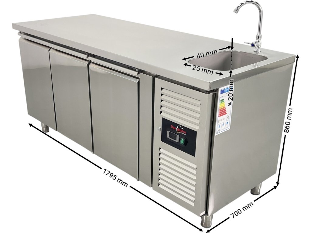 Połączony stół roboczy i chłodniczy ze zintegrowanym zlewem – idealny do profesjonalnych zastosowań
