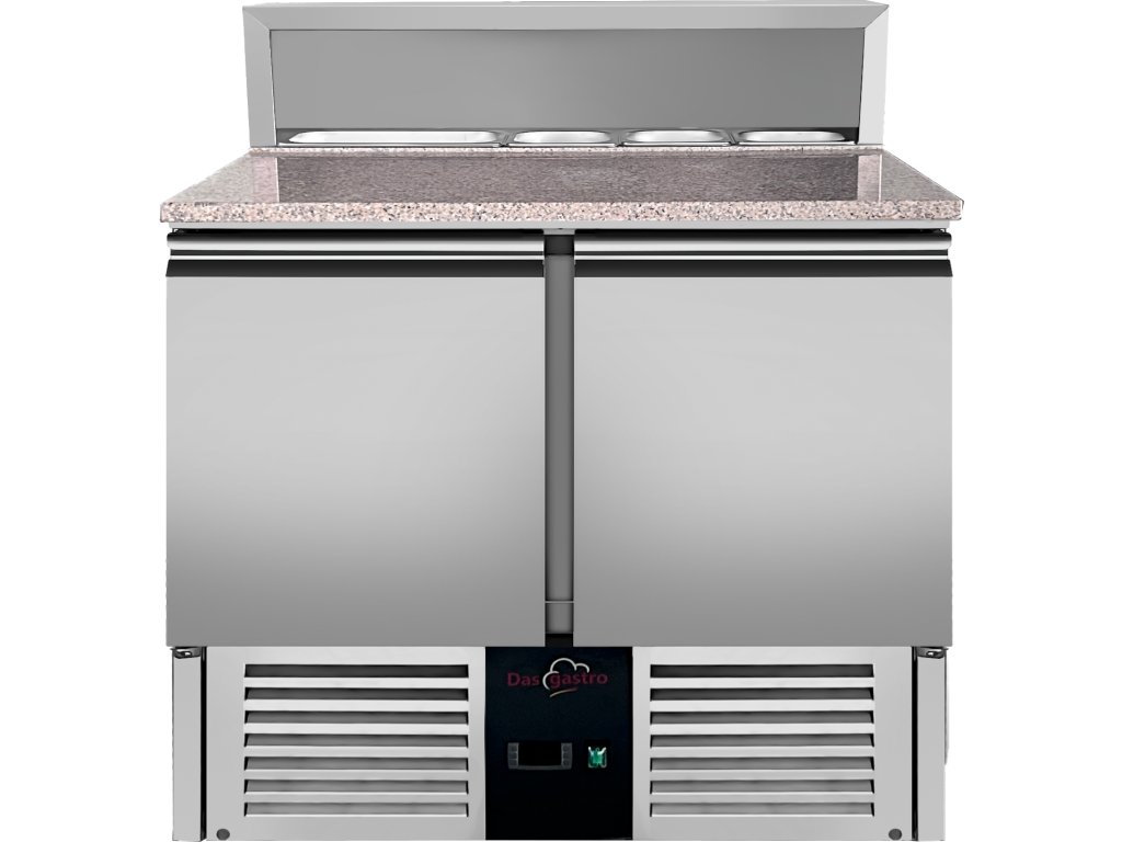 Stół chłodniczy z sałatką i blatem granitowym - 0,9 x 0,7 m - z 2 drzwiami