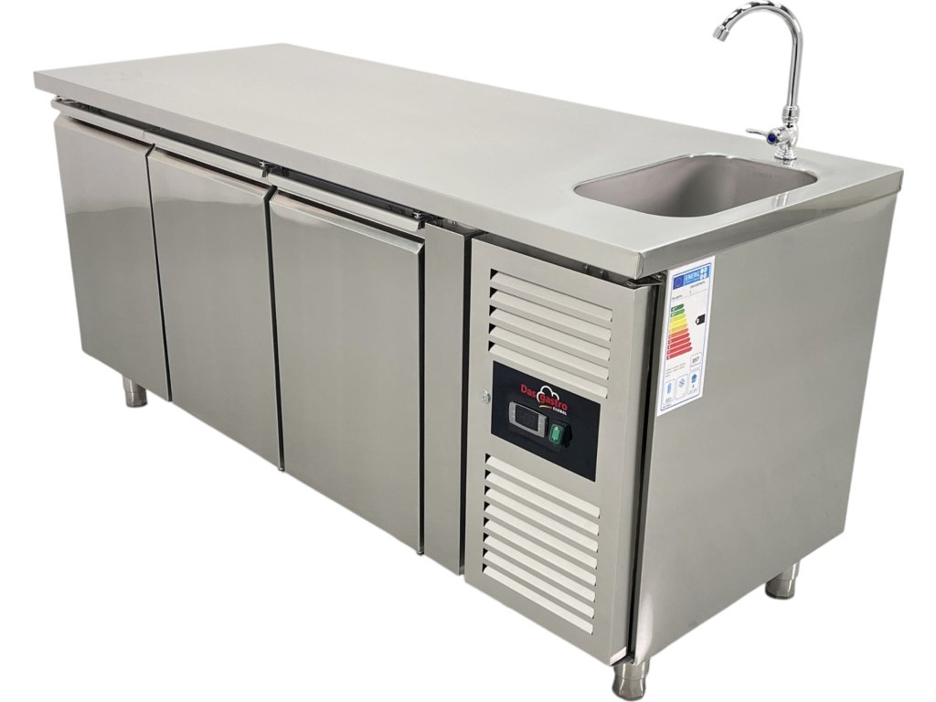 Stół roboczy i mroźniczy ze zintegrowanym zlewem – idealne rozwiązanie do profesjonalnych kuchni