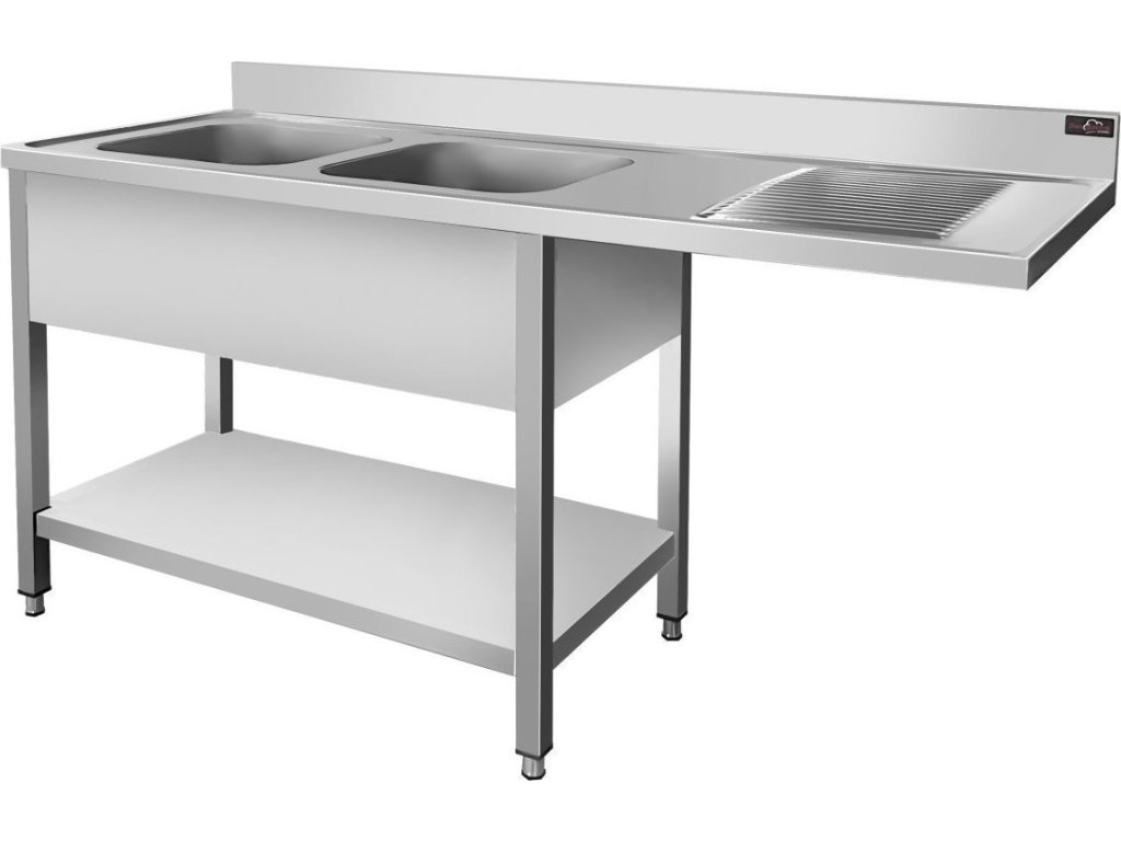 Zlewozmywak ze stali nierdzewnej do zmywarki - 1,6 m, 2 komory po lewej stronie, głębokość 60 cm