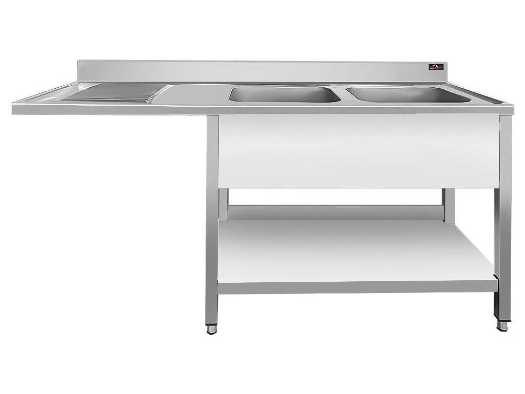 Zlew ze stali nierdzewnej do zmywarki - 1,8 m, 2 zlewy po prawej stronie, głębokość 70 cm