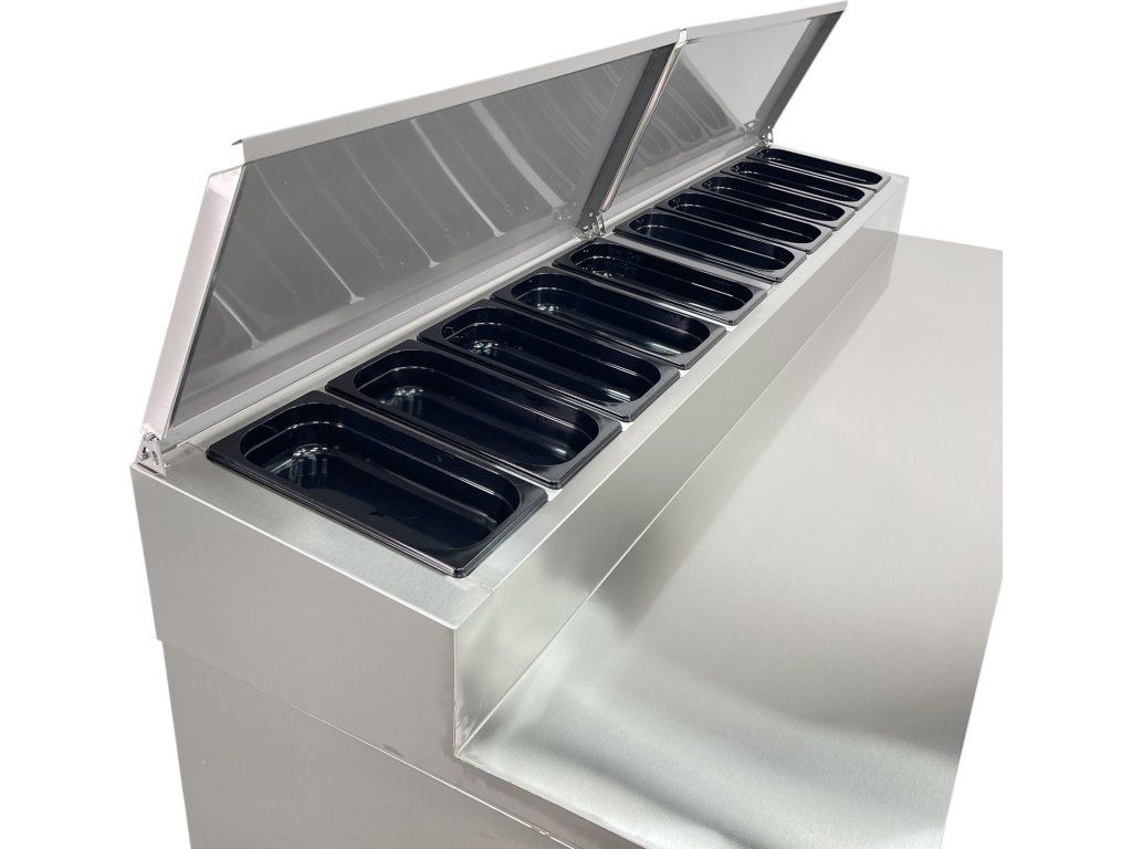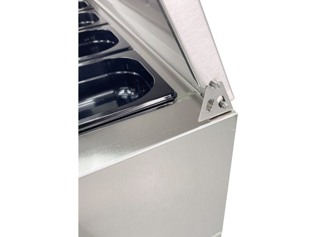 Górna powierzchnia jest przygotowana do umieszczenia pojemników GN - mieści się na niej 10 pojemników GN 1/3 w dwóch zamykanych sekcjach po pięć. (maksymalna głębokość 15 cm)