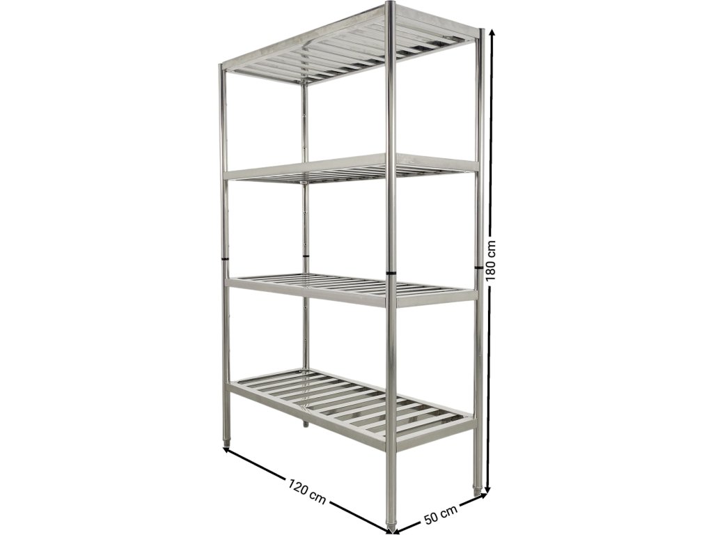 Ten stojak ze stali nierdzewnej jest idealnym wyborem do wszystkich środowisk, w których jakość, trwałość, higiena i elastyczność użytkowania są ważne. Otwarte półki zapewniają maksymalną przejrzystość i łatwy dostęp do przechowywanych przedmiotów.