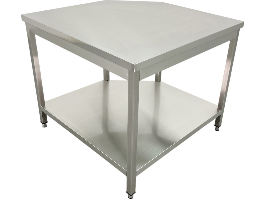Narożny stół warsztatowy to idealne rozwiązanie do efektywnego wykorzystania przestrzeni w narożnikach profesjonalnych kuchni. Zaprojektowano go tak, aby połączyć dwa stanowiska robocze, zapewniając jednocześnie stabilną i higieniczną powierzchnię roboczą. Dzięki dolnej półce umożliwia praktyczne przechowywanie przyborów i sprzętu.