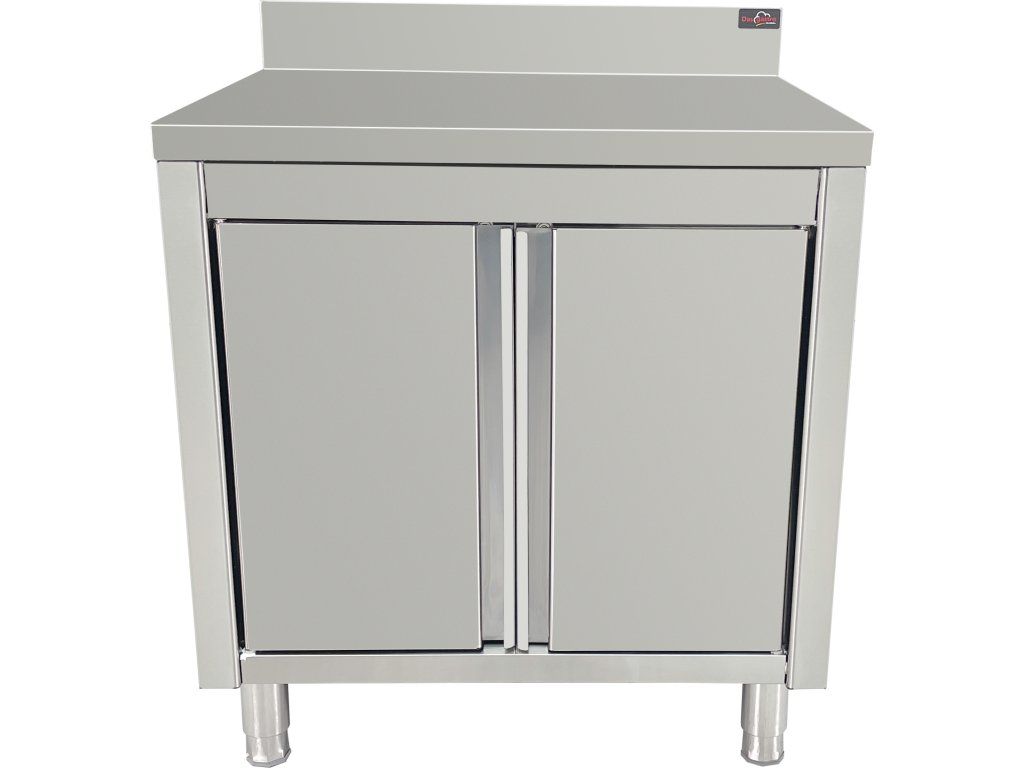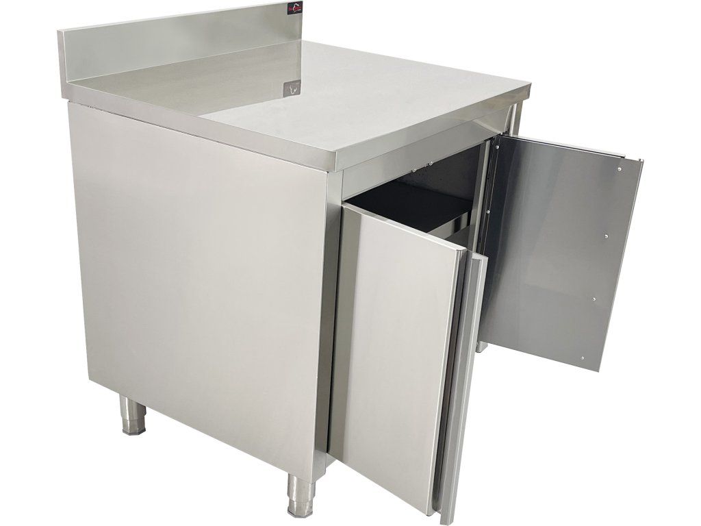 Stainless steel work cabinet - 800 mm - with hinged doors and rear trim