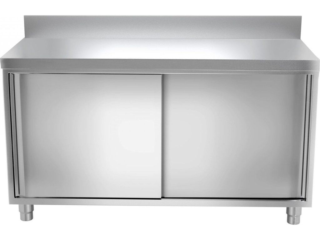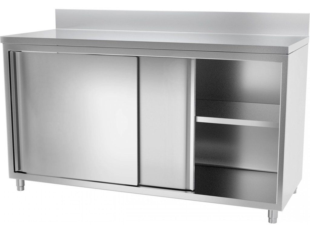 Stainless steel work cabinet - 1.6 m - with rear trim and sliding doors