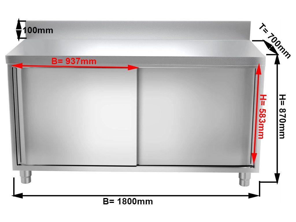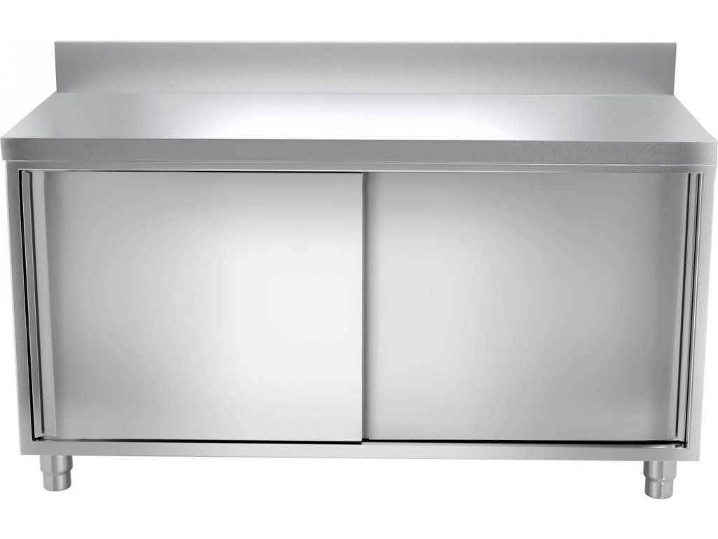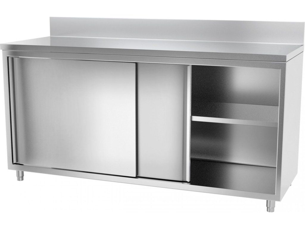 Stainless steel work cabinet - 1.8 m - with rear trim and sliding doors