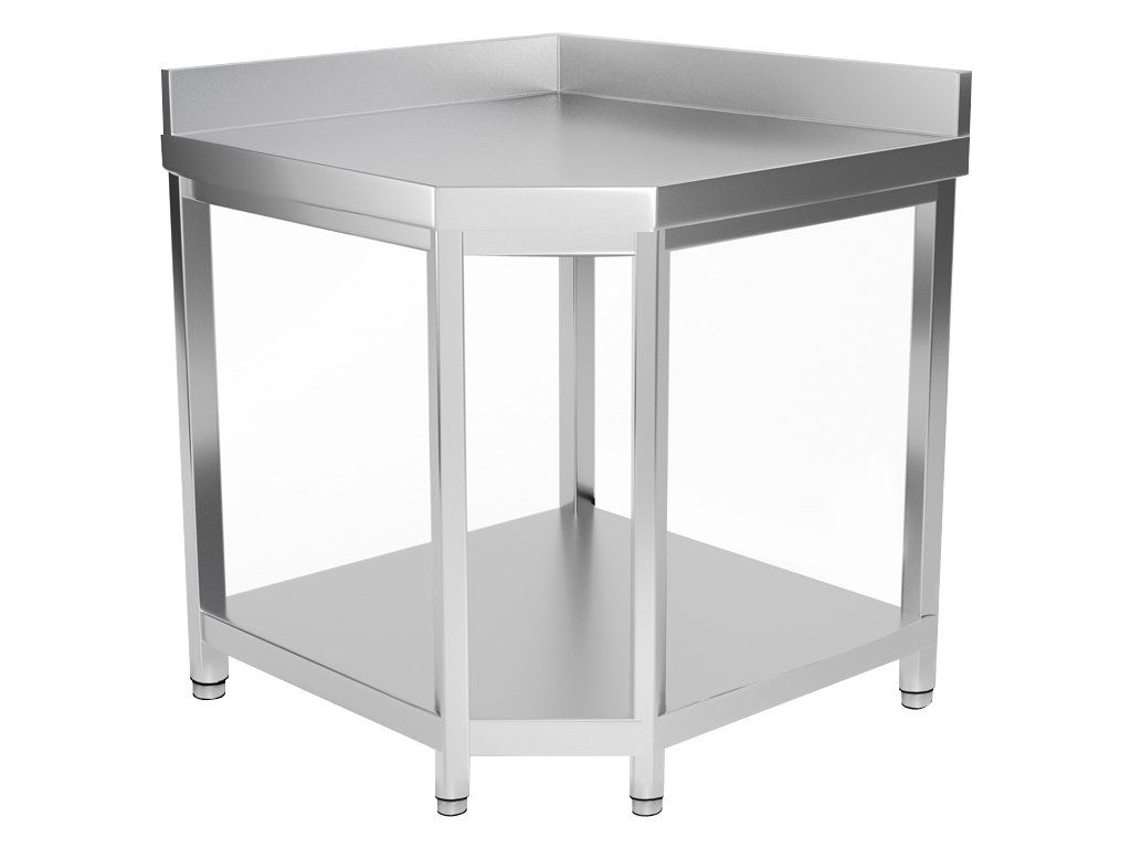 Corner workbench 600 mm - stainless steel with bottom shelf and rear upstand