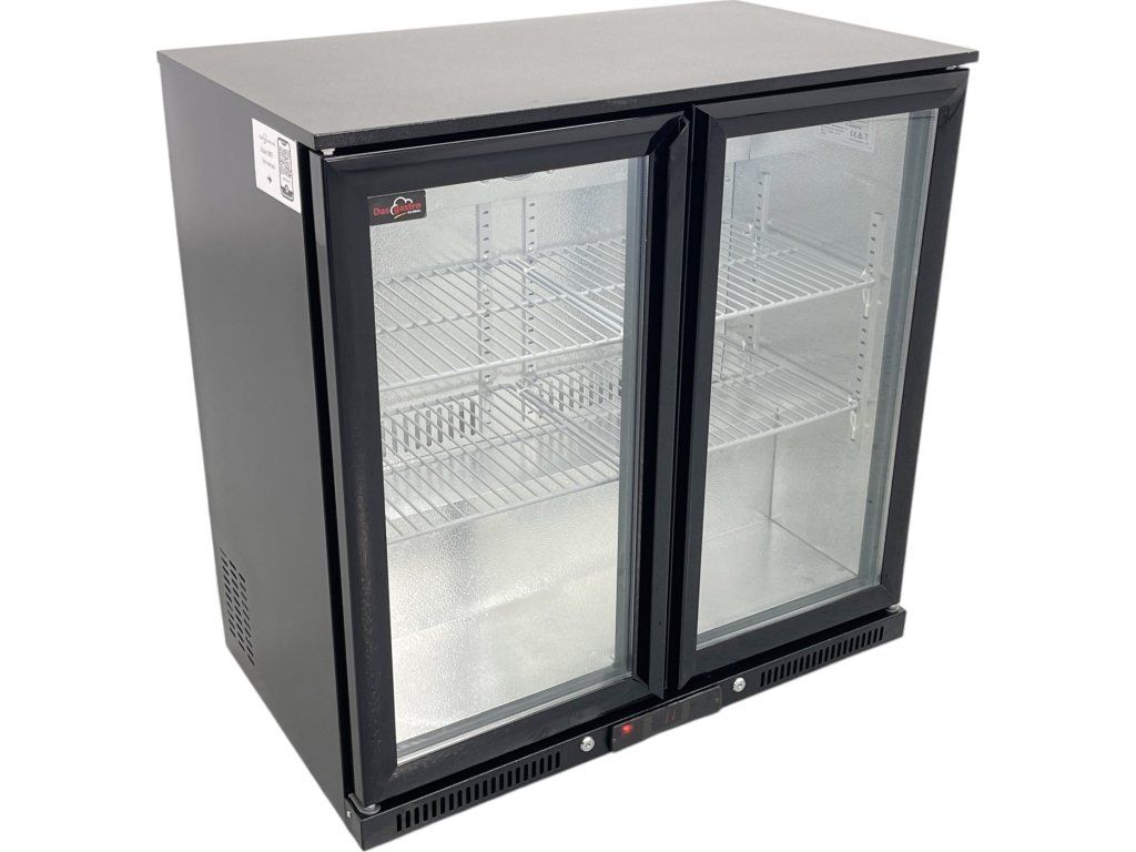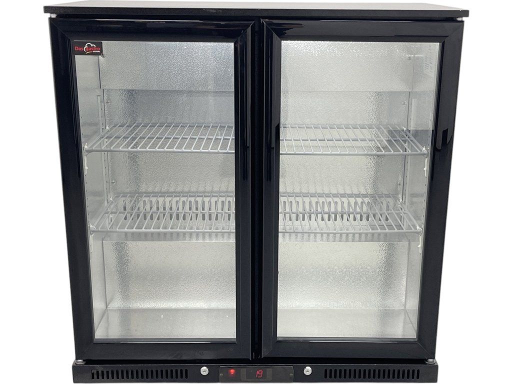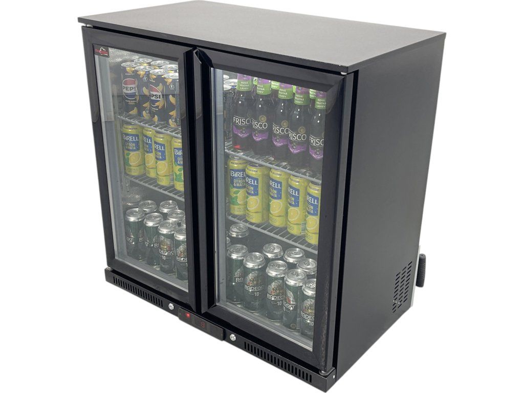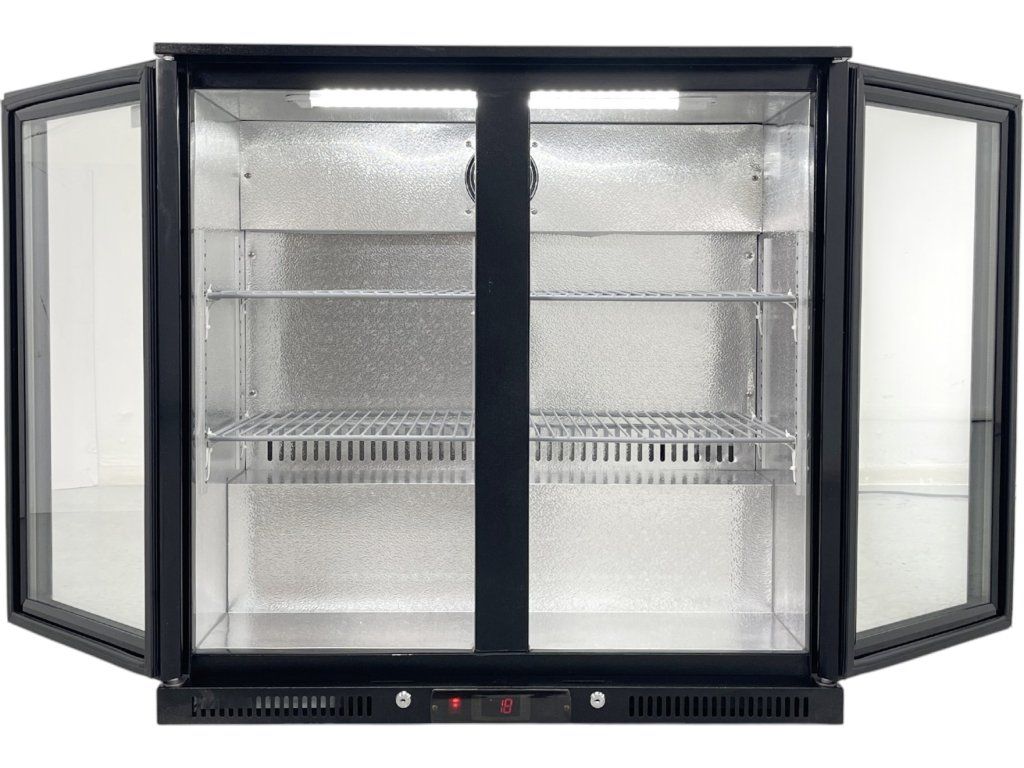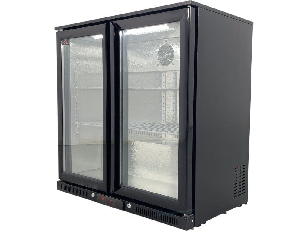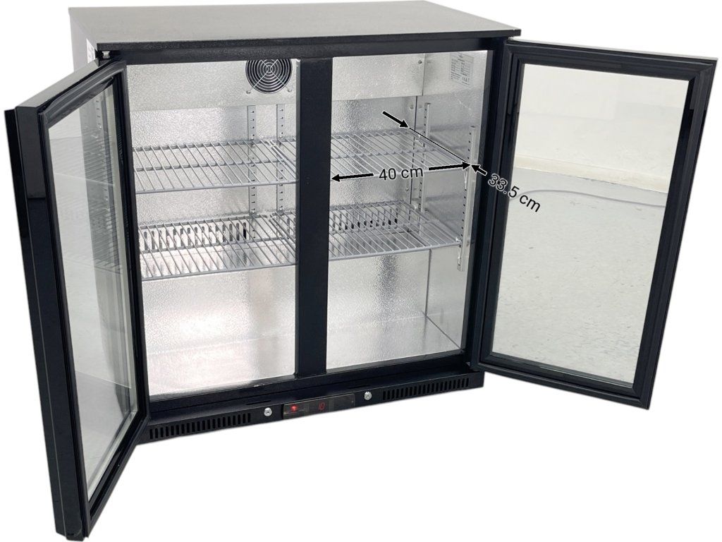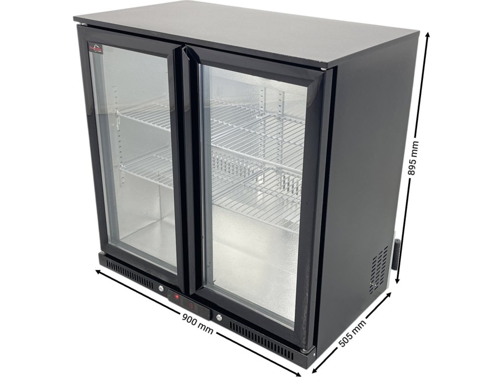 Barová chladnička – 0,9 m – 190 l – s 2 sklenenými dvierkami a 2 policami – čierna
