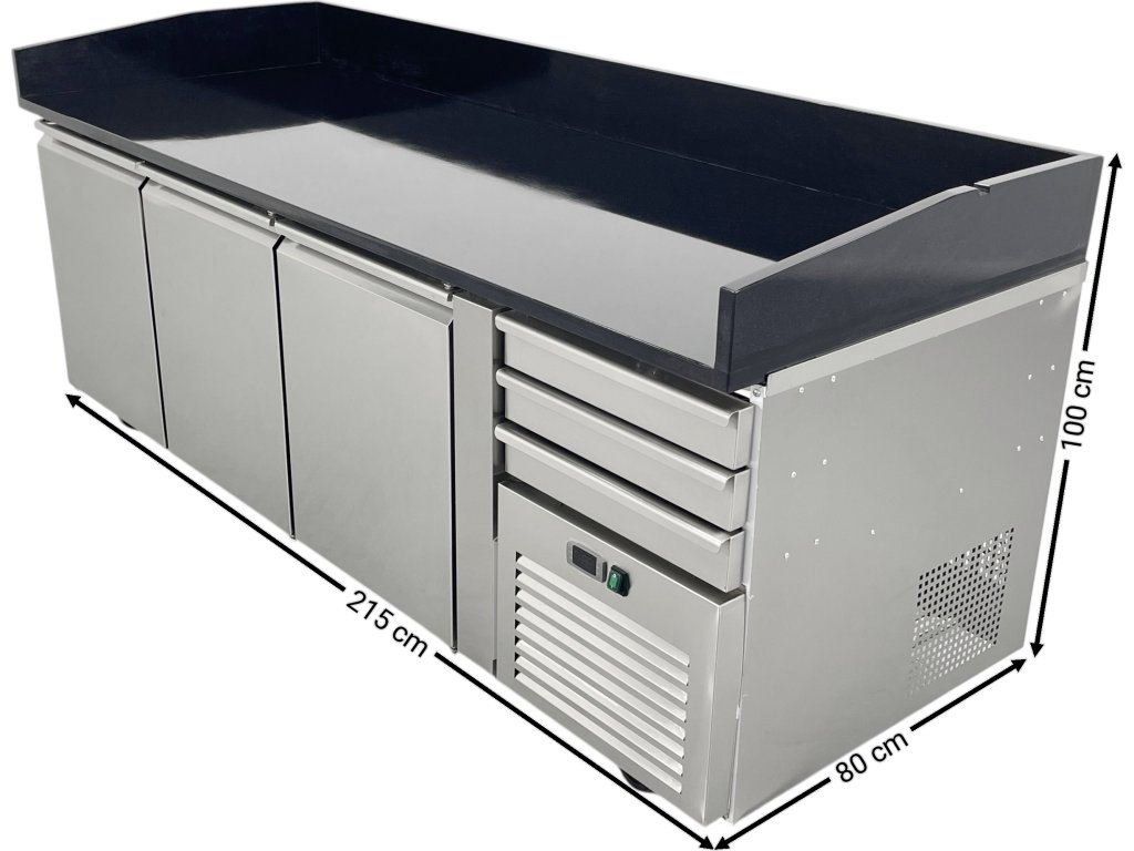 Chladiaci stôl na pizzu - 2015 x 800 mm - s čiernou doskou
