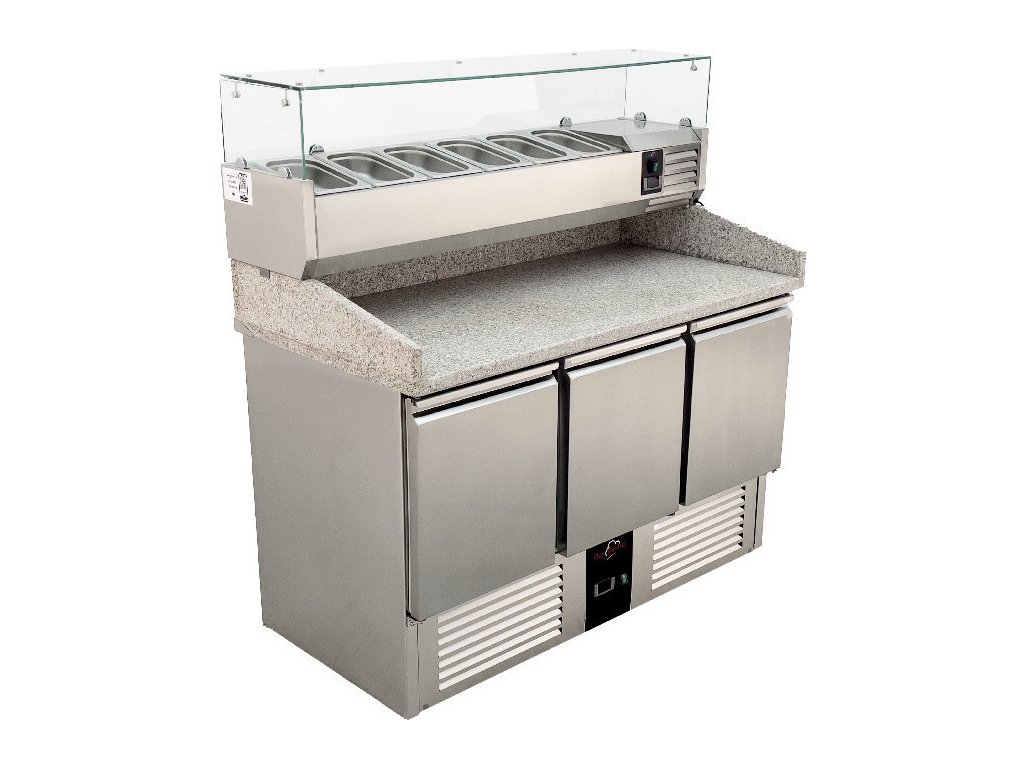 Chladiaci stôl na pizzu s 3 dvierkami a saladetou