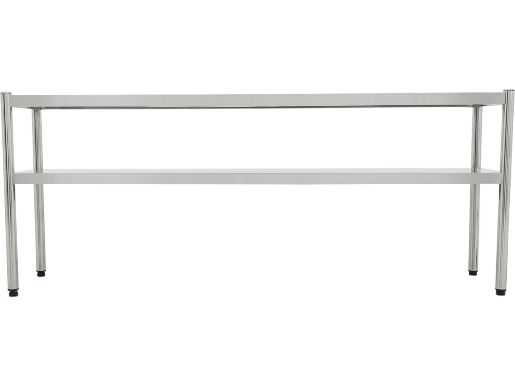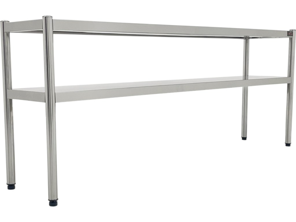 Funkčná a robustná nadstavná polica určená pre profesionálne kuchyne a gastronomické prevádzky. Ideálne na inštaláciu nad pracovnými stolmi, kde umožňuje prehľadné a hygienické uskladnenie riadu, surovín či pomôcok. Dvojpolicové prevedenie zvyšuje využiteľný priestor bez obmedzenia pracovnej plochy.