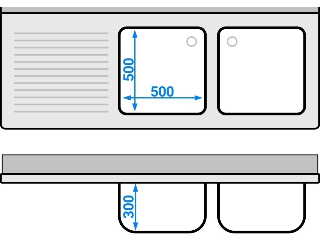 - Veľkosť drezu : 500 mm (dĺžka) x 500 mm (šírka) x 300 mm (hĺbka)