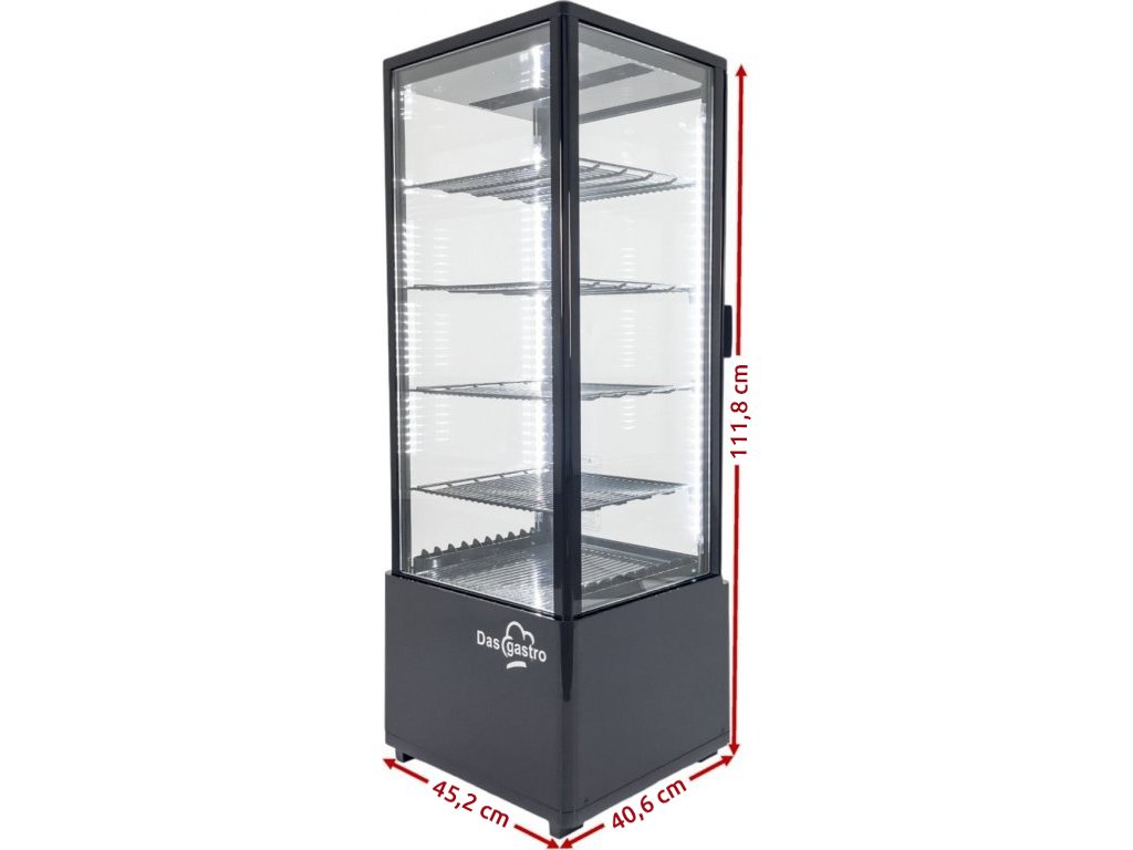 Táto chladiaca vitrína s kapacitou 98 litrov je navrhnutá pre maximálnu efektivitu, moderný vzhľad a dlhú životnosť. Vyrobená z kvalitného ABS plastu v elegantnej čiernej farbe, vitrína poskytuje spoľahlivý výkon a zároveň zaisťuje atraktívnu prezentáciu vašich produktov. Ideálne na použitie v kaviarňach, reštauráciách či maloobchodných priestoroch.