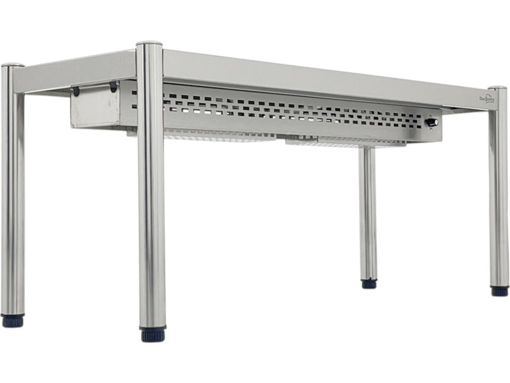 Thermal bridge 0.8 m - with 1 shelf, height 0.4 m is a practical solution for keeping ready meals at the ideal temperature when serving. Thanks to infrared heating with ceramic heating elements, it ensures even heat distribution and a stable operating temperature of up to 60 °C. The design is space-saving, durable and designed for everyday gastro operation.
